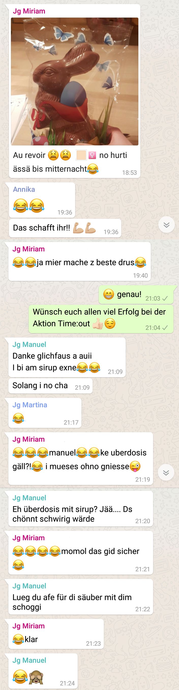 Ziemlich am Anfang des Jahres führte ich mit den Jugendlichen eine Feedback Umfrage durch, bei der ich wissen wollte, wie sie die jeweiligen Plausch- oder Themenabende so erleben. Es war sehr zwiespältig denn einerseits diskutieren die Jugendlichen sehr gerne, anderseits sagten sie, sie möchten nicht immer nur über den Glauben und über Gott diskutieren. Gerne dürft ihr auch dafür beten, dass die Jugendlichen weiterhin regelmässig zur JG kommen, auch gerade bei Themenabenden.