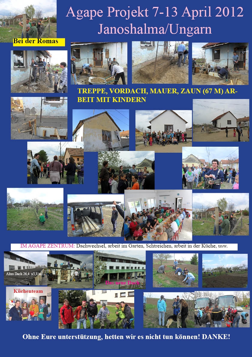 Die verschiedenen Baustellen konnten erfolgreich abgeschlossen werden. Dieses Jahr haben wir ein Dach neu gedeckt, ein weiteres isoliert und holzvertäfelt, Bäume und Hecken zurechtgeschnitten und am Agape Zentrum einen neuen Spielplatz gebaut.