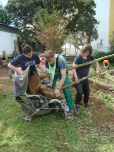 Das Higligth beim der Arbeit war ein alter Kinderwagen als Transportmittel benuzt wurde