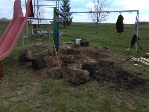 Selber war ich am Projekt „Spielplatz“ dabei. Nachdem wir letztes Jahr den morschen Spielplatz abgebaut hatten, durften wir dieses Jahr einen neuen bauen. Uns wurde ein Stapel Holz gezeigt und daraus sollten wir etwas bauen. Zuerst haben Annika und ich uns recht verdutzt angeschaut, doch schnell haben wir begonnen Ideen zu sammeln, Skizzen zu zeichnen und am Ende vom Vormittag hatten tatsächlich schon die Baupläne fertig! Am zweiten Arbeitstag wurden dann die Halterungen für die Pfosten im Boden einbetoniert und am 3. und 4. Arbeitstag haben wir dann unseren Spielplatz aufgebaut, das ganze Holz geschliffen und mit Öl lackiert. Am letzten Tag, nach einer „Überstunde“ Arbeit waren wir fertig! Und das Ergebnis darf sich zeigen lassen. Hätten wir am ersten Tag gedacht, so einen schönen Spielplatz zu bauen?