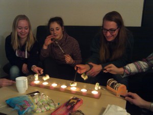 Am letzten JG-Abend im Jahr 2015 war eigentlich geplant ein Feuer auf dem Montélaz zu machen, Marshmallows zu bräteln und heissen Tee zu trinken. Kurzfristig haben wir das Programm den Umständen anpassen müssen, da es mehreren von uns gesundheitlich nicht so gut ging. Also sind wir schlussendlich im Jugendraum geblieben, haben Marshmallows über Kerzen gebrätelt, eine Geschichte gehört und heissen Tee getrunken. Ausserdem haben wir viel gelacht und auch drinnen einen schönen Abend verbracht.