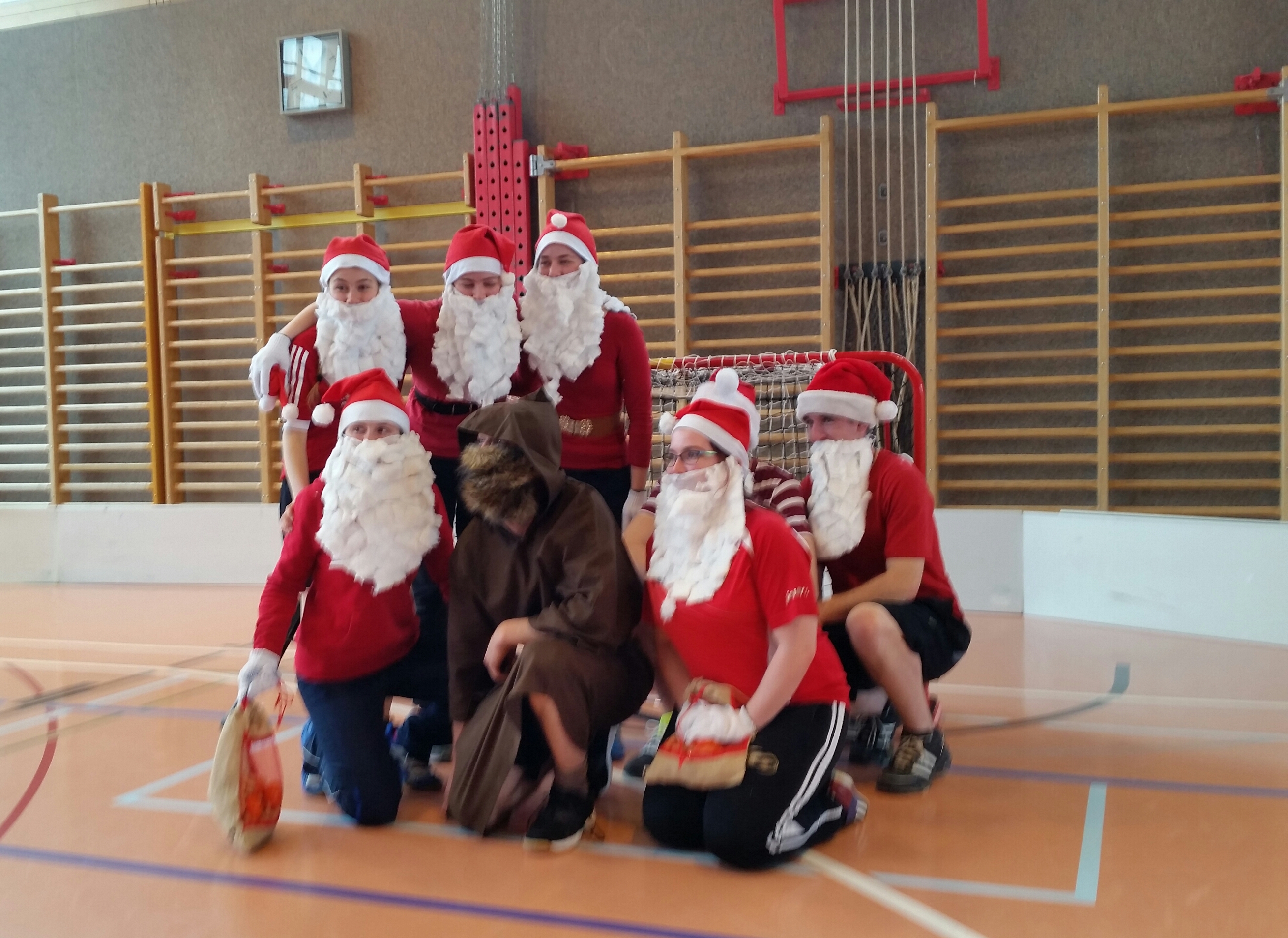 Wir haben uns dieses Jahr als Samichläuse verkleidet. Es war eine ziemlich spontane Aktion aber schlussendlich hat es doch noch geklappt dass wir als Mannschaft ein einheitliches Kostüm hatten, ausser natürlich der „Schmutzli“.