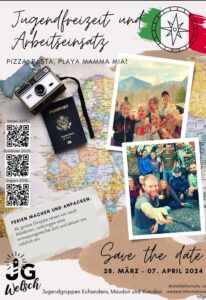 Ostern steht vor der Tür und somit auch unseren alljährlichen Auslandseinsatz. Bald ist es so weit! Dieses Jahr fahren wir für 10 Tage nach Kalabrien / Italien und leben im Centro Emmaus mit. Das Centro betreibt einen Landwirtschaftsbetrieb und beherbergt eine Grossfamilie, die sich um Kinder aus benachteiligten Familien kümmert. Wir werden bei praktischen Arbeiten auf dem Gelände mithelfen, auf dem Feld, im Garten oder in der Küche. Nebst den Arbeiten bleibt genügend Zeit, um die Umgebung vor Ort zu erkunden, Ausflüge zu machen und Gemeinschaft zu pflegen.  Wir wollen uns auch jeden Tag Zeit für uns persönlich nehmen und uns fragen, was Gott für eine Rolle in unserem Leben spielt. Die tollen Flyers sind verteilt, das Werbevideo läuft und die Anmeldungen sind offen. Wir hoffen und beten, dass die Jugendlichen sich verbindlich anmelden. So ein Auslandseinsatz ist sowohl in den Vorbereitungen wie in der Durchführung intensiv, wertvoll und herausfordernd. Wir sind euch sehr dankbar, wenn ihr jetzt schon für dieses Abenteuer betet.